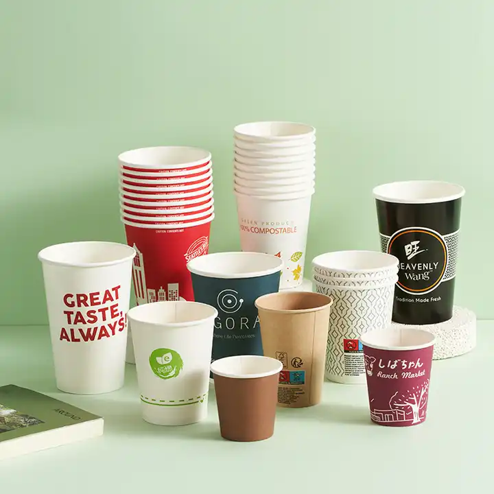 أكواب ورقية مطبوعة بألوان زاهية ومواد آمنة. اجعل شعارك جزءًا من تجربة قهوة العميل اليومية.